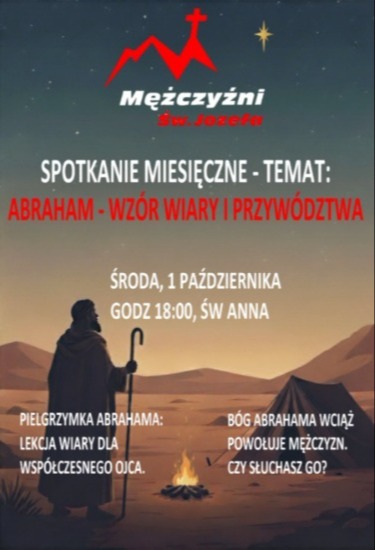 Męski dzień skupienia "Rola Maryi w życiu dojrzałego mężczyzny" Kiedy? Sobota, 27 września 2025 od godz. 8 do godz. 15. Gdzie? Kościół pw. św. Józefa...